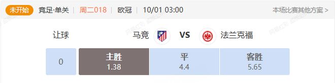 周二欧冠来袭马竞主场能否战胜法兰克福