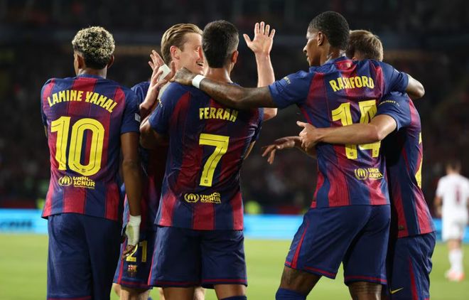 这是一场欧冠冠军之间的较量,巴萨5次捧杯,上一次还是2015年,巴黎只有1次,就是上赛季。上赛季,巴萨攻击力很猛,最后半决赛被国米淘汰出局,无缘决赛,巴黎则在决赛中5比0横扫国米,首次捧起欧冠冠军奖杯。新赛季欧冠首轮,两队都赢得开门红,巴萨依靠新援拉什福德的梅开二度,客场2-1险胜纽卡斯尔,巴黎主场4-0大胜亚特兰大。据德转统计,巴萨全队身价11.1亿欧,巴黎全队身价10.7亿欧,两队首发名单如下: