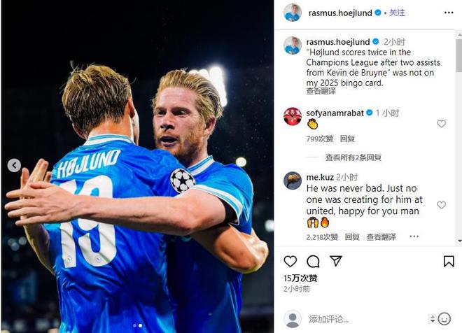 - 欧冠 | 霍伊伦:德布劳内助攻我上演梅开二度,这剧情我完全没想到