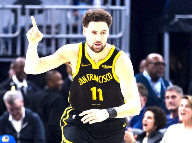 第八位:克莱・汤普森 ——“历史级射手” 的持球魔咒,无球再神难当第一核心克莱・汤普森是 NBA 历史上最顶级的无球射手之一 —— 单节 37 分、单场 14 记三分、总决赛单场 11 记三分,这些纪录足以证明他的投射能力;防守端,他能从 1 号位防到 3 号位,是勇士 “死亡五小” 的外线防守核心。可就是这样一位 “攻防一体的无球杀手”,却因 “持球能力差”,始终无法成为球队第一核心,这也成了他走向 “超级巨星” 的最大拦路虎。汤普森的持球能力有多差?没防守时,他能把球运出界外;面对轻微对抗,他会被自己晃倒;进攻端,他几乎没有自主持球突破的能力,所有得分都依赖队友传球或掩护 —— 球迷调侃他 “运球过不了半场”,并非夸张。这种 “持球魔咒”,让他在勇士的体系里只能做 “二当家”:库里负责持球组织,他负责跑位接球投篮;一旦库里受伤,汤普森独自带队时,球队进攻就会陷入停滞 ——2022-23 赛季,库里缺席期间,汤普森场均仅得 19.8 分,投篮命中率 41%,远低于他的生涯平均水平。若汤普森能练出合格的持球能力(比如像科比那样的持球突破、翻身跳投),他将成为 “历史级分卫”—— 无球时能靠投射拉开空间,持球时能自主创造得分机会,攻防两端都将无懈可击。可现实是,持球能力这个 “拦路虎”,让他只能做 “顶级二当家”,永远无法触及詹姆斯、杜兰特那样的 “第一核心” 高度。