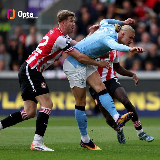 英超第7轮,曼城客场对阵布伦特福德,上半场哈兰德破门为曼城取得领先,至此,哈兰德在英超出战过的23座球场已有22座取得进球。