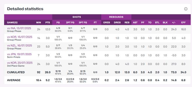 翟若云在中国队只是一个投手,但她在全锦赛是超级球星,第一阶段附加赛就是依靠她才拿到了第二阶段淘汰赛的资格,第一阶段翟姐场均28.7分8.3篮板3.3助攻1.7抢断十分炸裂,上赛季的WCBA她还是当选全明星北区票王。以上内容请关注首页
