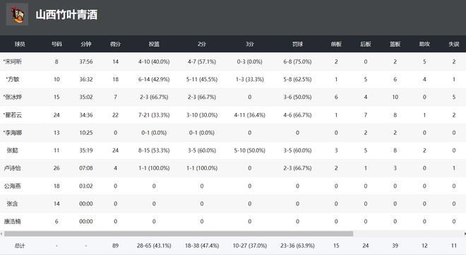 山西全队8人轮换,先发有3人上双,替补席的张懿35分钟,15中8,三分10中5,拿到24分8篮板2助攻,她成为此役的超级奇兵。