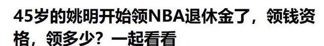 - NBA | 姚明开始从NBA领退休金了,效力3年+45岁每月可领1.3万元