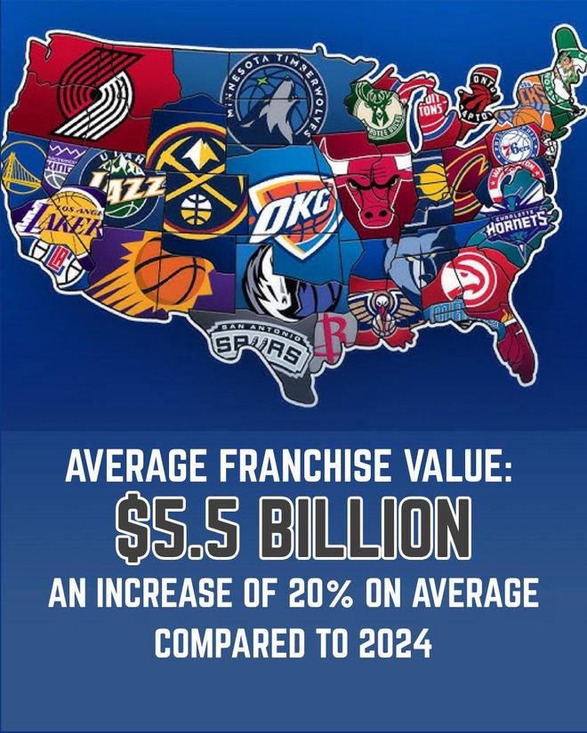 NBA交易的体育银行家和律师,来计算每支球队的估值。根据统计,联盟各队的平均估值为55亿美元,所有球队的总估值高达1650亿美元,和去年相比增长了20%,以下是具体排名:1、勇士:113.3亿美元2、湖人:100亿美元3、尼克斯:98.5亿美元4、快船:67.2亿美元5、凯尔特人:63.5亿美元6、篮网:62.2亿美元7、公牛:61.2亿美元8、热火:60.3亿美元9、76人:56.1亿美元10、火箭:55.3亿美元11、独行侠:52.4亿美元12、猛龙:52.2亿美元13、太阳:50.9亿美元14、老鹰:50.2亿美元15、国王:50亿美元16、骑士:48.6亿美元17、掘金:48亿美元18、奇才:47.8亿美元19、步行者:47.6亿美元20、雄鹿:45.4亿美元21、马刺:45亿美元22、雷霆:43.4亿美元23、爵士:42.7亿美元24、开拓者:42.5亿美元25、森林狼:42.4亿美元26、魔术:42.1亿美元27、活塞:41.7亿美元28、黄蜂:41.3亿美元29、鹈鹕:40.2亿美元30、灰熊:40亿美元本次