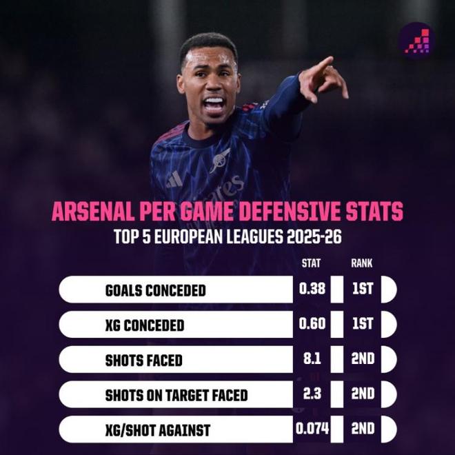 本赛季开始前,伊萨克为了从纽卡加盟利物浦,缺席了球队的季前训练,目前似乎仍在恢复状态。消息来源:赛事官网4 - 防守真好阿森纳在本轮英超客场1-0小胜富勒姆,延续了出色的防守表现。数据统计显示,阿森纳本赛季5项防守端关键数据均位列英超前二: