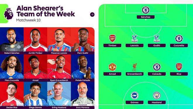 - 英超 | 希勒评英超第10轮最佳阵:哈兰德、切尔西3人、阿森纳2人在列