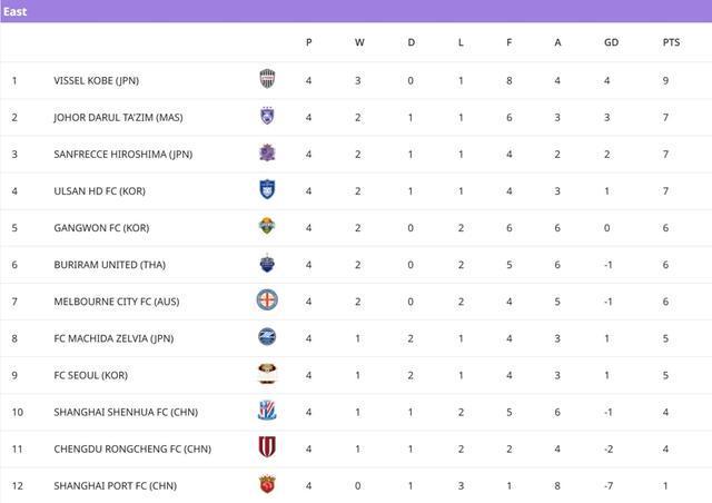 - 亚冠 | 大写的尴尬!申花客场不敌柔佛新山,亚冠积分榜中超前三集体垫底