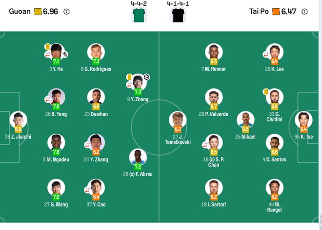 【出场阵容】北京国安首发:门将:39-张健智;后卫:3-何宇鹏(81’35-江文豪)、5-恩加德乌、26-柏杨(76’30-范双杰)、27-王刚;中场:8-贡萨洛、23-达万、37-曹永竞(81’17-杨立瑜)、21-张源(69’7-塞尔吉尼奥);前锋:9-张玉宁(69’11-林良铭)、29-法比奥。北京国安替补:33-努尔艾力·阿巴斯、34-侯森、16-冯博轩、20-王子铭、6-池忠国、10-张稀哲、18-方昊。和富大埔首发:门将:94-谢家荣;后卫:4-达西埃尔、26-李家豪(69’9-保利尼奥·西苗纳托)、33-加布里埃尔·奇维迪尼、44-韦弗顿·兰热尔;中场:7-米歇尔·伦纳、18-伊戈尔·萨尔托里、16-陈肇钧(61’10-费兰度)、20-帕特里克·瓦尔韦德、25-米卡埃尔;前锋:27-詹姆斯·特梅尔科夫斯基。和富大埔替补:1-卢兆崎、93-何文辉、5-杜国樑、6-罗振庭、11-卢卡斯·席尔瓦、15-杜国榆、23-李乐谦、24-颜卓彬、80-钟伟强、87-尼高拉斯。以上内容请关注首页JRS