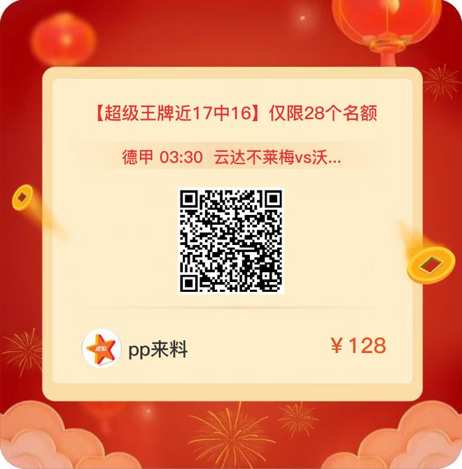 PP体育联合竞彩行业头部机构,共同打造【竞彩分析栏目】,整合专业分析师团队与赛事版权资源,构建覆盖文字、视频、直播的全方位竞彩生态。栏目定位于“数据驱动+专业解读”,服务于彩民与体育迷的双重需求。点击下方扫码进入PP体育有料主页,查阅更多精准赛事分析昨日回顾昨日公推斯图加特再次成功拿下!近期公推继续连红!私厨方面!超级王牌皇家贝蒂斯稳稳拿下近17中16!今日PP有料团队调整状态继续奉上足球赛事/澳超等精选赛事!同时想了解更多详细内容可添加下方客服!