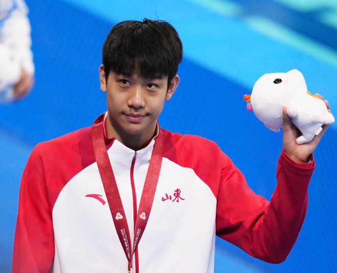 泳池里,年轻一代同样耀眼。山东队18岁新秀张展硕在男子1500米自由泳中称雄,收获本届全运会个人第五金。13岁的河北队选手于子迪在女子400米个人混合泳中折桂,以三金结束首次全运征程。