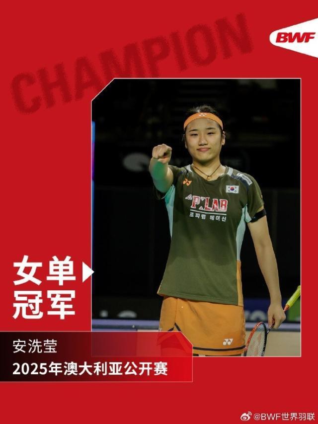 澳大利亚羽毛球公开赛决赛,韩国选手安洗莹21比16、21比14印尼选手瓦尔达尼,夺得冠军。同时,这也是安洗莹获得的赛季第十冠。短道速滑世巡赛男子5000米接力决赛:中国队夺得亚军