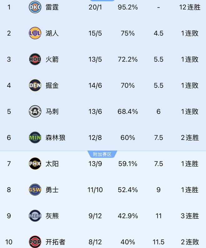 在西部排行榜上,雷霆继续稳居榜首,第2名之争很激烈,快船快垫底了。大家说哪队会在常规赛结束时排名西部第2呢?以上内容请关注首页JRS