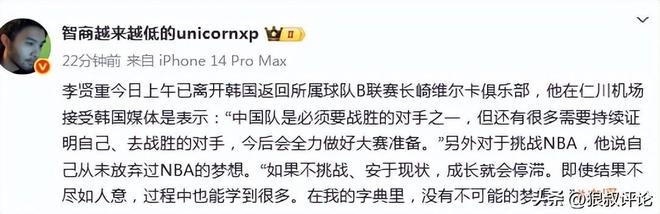 - NBA | 李贤重:中国队是必须要战胜的对手之一从未放弃NBA的梦想
