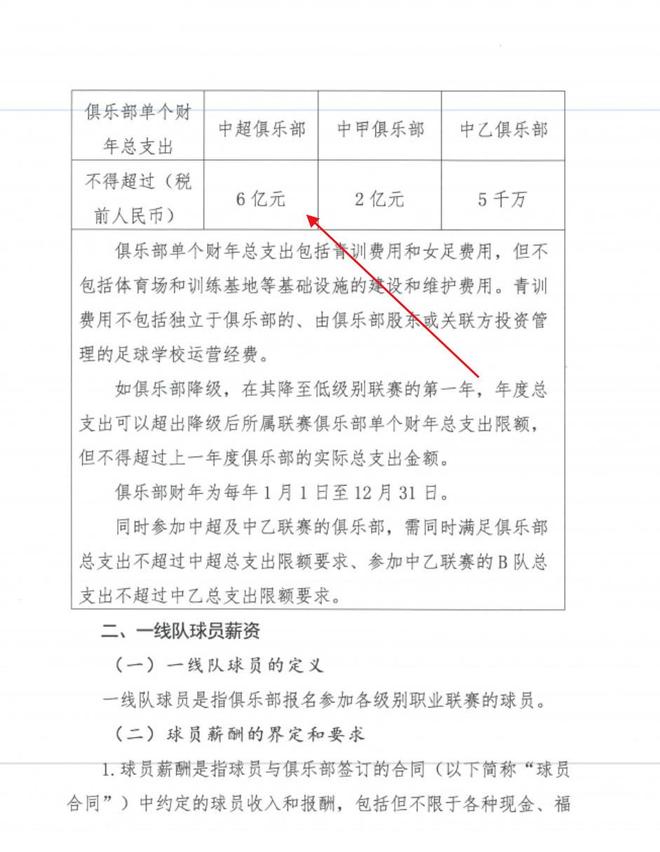 - 中超 | 中足联出台新规:中超球队单财年总支出税前不得超过6亿元,中甲不得超2亿、中乙不得超5000万