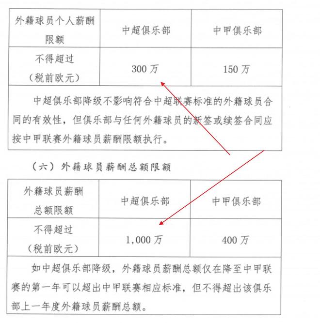 - 中超 | 中足联官宣!中超国内球员最高年薪税前500万,外援最高300万欧元