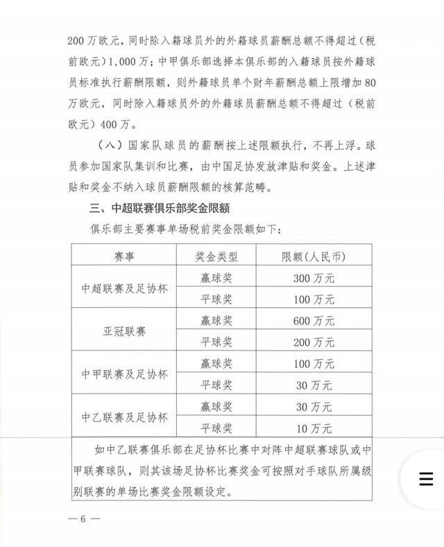 - 中超 | 官宣!中超顶薪500万,年支出6亿,赢球奖1000万,投入全面限额
