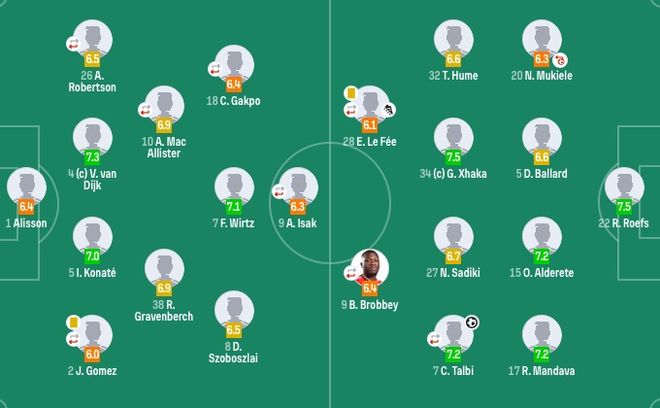 【出场阵容】利物浦首发:1-阿利松、2-戈麦斯(65'17-琼斯)、4-范戴克、5-科纳特、26-罗伯逊(86'6-科尔克兹)、7-维尔茨、8-索博斯洛伊、10-麦卡利斯特(74'22-埃基蒂克)、38-赫拉芬贝赫、9-伊萨克(86'14-基耶萨)、18-加克波(46'11-萨拉赫)替补未出场:25-马马尔达什维利、3-远藤航、42-尼奥尼、73-恩古莫哈桑德兰首发:22-罗埃夫斯、15-阿尔德雷特、5-巴拉德、17-雷尼尔多、28-勒费(79'6-海特勒伊达)、34-扎卡、9-布罗贝伊(62'18-伊西多尔)、20-穆杰莱、32-休姆、27-萨迪基、7-塔尔比(91'13-奥尼恩)替补未出场:1-帕特森、4-尼尔、14-蒙德尔、24-阿丁格拉、25-特劳雷、12-马延达以上内容请关注首页JRS