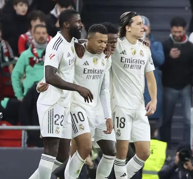 西甲最新积分榜皇马之前还领先巴萨5分,但是随后遭遇了三连平,目前的积分和排名都已经被巴萨反超,客场PK毕尔巴鄂竞技的比赛不容有失。这一场比赛,姆巴佩依然是皇马取胜的功臣,上半场第7分钟阿诺德在后场找到中场附近的姆巴佩,后者摆脱防守球员一条龙突击到大禁区弧顶处劲射破门,这是超巨的表演时刻。第29分钟毕尔巴鄂竞技创造出有威胁的射门,贝伦格尔的射门被库尔图瓦封堵。