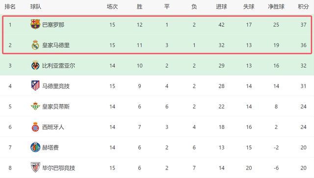 - 西甲 | 随着皇马30,巴萨31,西甲第19轮结束两场比赛,最新积分榜如下