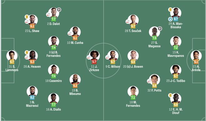 出场阵容曼联(3421):31-拉门斯;3-马兹拉维,26-海文(46’15-约罗),23-卢克肖(88’6-利马);16-迪亚洛,18-卡塞米罗,8-B费,20-达洛特(68’13-多古);19-姆伯莫,10-库尼亚(77’25-乌加特;11-齐尔克泽(78’7-芒特)西汉姆联(4231):23-阿雷奥拉;29-万比萨卡,15-马夫罗帕诺斯,25-托迪博,12-迪乌夫;32-波特斯,27-马加萨;28-绍切克,20-鲍文,18-马特乌斯;9-威尔逊以上内容请关注首页JRS