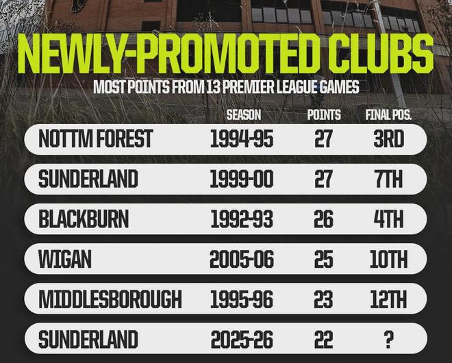 从统计数据可以看到,桑德兰是最近20年来在英超成绩最好的升班马球队。上一支如此惊艳的升班马,还是2005-06赛季的维甘竞技。不过更深入的Opta统计显示,这支升班马的状态有下滑的趋势。本赛季黑猫的跑动距离比英超平均水平高出12%,不过他们的高强度冲刺距离,已经连续三周出现下降。上一轮联赛面对利物浦,桑德兰的跑动距离比赛季初时减少了8.3公里。