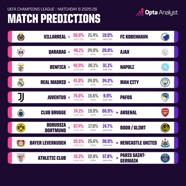 举个例子,本周国际米兰与利物浦的比赛模拟结果是44.8%对30.1%,实际战况英超红军1比0取胜,一点都没让意甲蓝黑占到便宜。另外看近期状态的话,上周末刚在主场输球的皇马也确实不如曼城。蓝月是英超三连胜,皇马则是对塞尔塔0比2输球又输人,米利唐因伤离场还有3人吃到红牌,气氛非常不对劲。所以瓜迪奥拉会不会趁机“要了徒弟的命”?在拜仁,阿隆索曾是瓜帅麾下部将,为后者出场79次。作为主教练,这则是两人的首次碰面。除“皇城大战”之外,今夜还将有阿森纳、巴黎圣日耳曼等豪门登场。其中5战全胜位列榜首的阿森纳已经确定可以晋级(至少踢附加赛),要提前锁定积分榜前八位置直接入围16强也很有希望。但对于枪迷而言已经有坏消息:中卫萨利巴依旧不能复出,后防的伤病危机暂时还没有缓解的迹象;中场赖斯生病,应该会“被迫轮休”;另外天才小将道曼也因伤退出了欧冠的A名单注册,他的名额由最近已经伤愈但一直没有出场的热苏斯顶替。以上内容请关注首页JRS