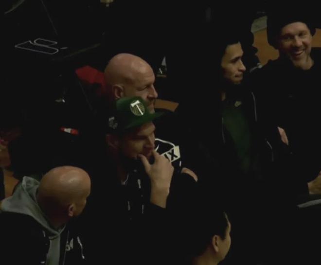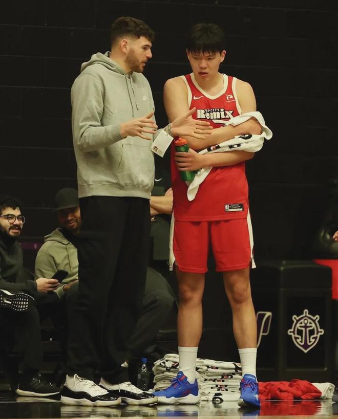 今天是开拓者的一个休息日,不少成员选择到现场支持混音,也看看杨瀚森的发挥。克林根和卡马拉作为球员代表来了,其中克林根还在场边给杨瀚森进行提醒和讲解。