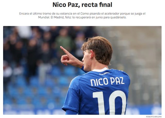 “皇马将回购尼科-帕斯”,12月26日的《阿斯报》写道。21岁的尼科-帕斯,继续在意甲快速成长,已经具备立足皇马的实力。过去这1年多,尼科-帕斯的身价从1000万欧元涨到6500万。明年7月,皇马将回购尼科-帕斯,这是俱乐部已经确定的计划。对尼科-帕斯来说,为皇马一线队效力,这将是梦想成真。