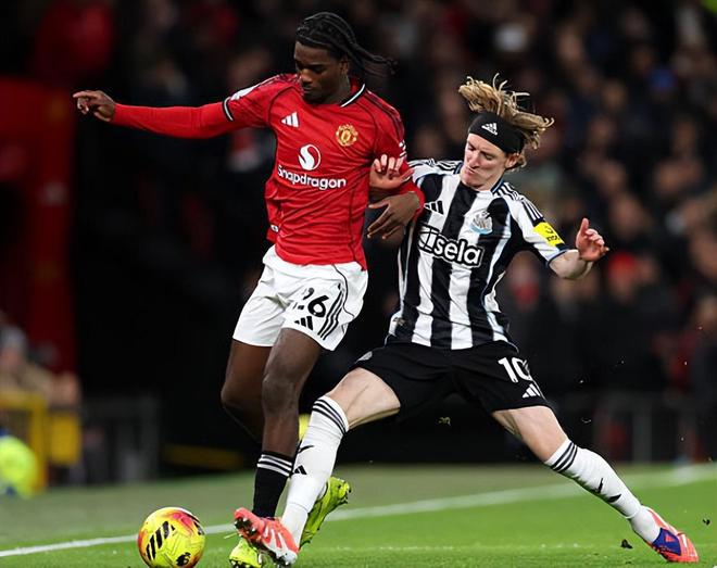 比赛的转折点出现在第24分钟,达洛特标志性的手榴弹边线球掷入禁区,纽卡球员沃尔特马德的头球解围意外成为乌龙助攻,多尔古如猎豹般敏锐捕捉战机,迎着下落的皮球侧身凌空抽射,皮球直窜死角,完成了一粒足以竞争赛季最佳的进球。此役,曼联务实至上的战术也是奏效了。球队全场33.4%的控球率创下本赛季新低,红魔主动放弃球权,转而用高效反击和坚固防守应对纽卡的围攻。这种战术选择虽让比赛过程跌宕起伏,却尽显成熟与韧性。下半场的60分钟内,球场俨然变成了门框考验场,舍什科禁区内连续虚晃后的爆射击中横梁,霍尔随即用一记精彩远射还以颜色,同样被横梁拒绝。若非门框的两次阻拦与门将拉门斯的5次关键扑救,比赛结果或许会被改写。而第63分钟利桑德罗的手球争议,VAR最终驳回纽卡的点球上诉,更让这场胜利多了几分戏剧性。此役曼联的赢球是很多关键球员的集体靠谱的表现,38岁的卡塞米罗全场完成9次抢断,创下赛季新高,用铁血防守筑起中场屏障;此前饱受争议的利桑德罗在关键时刻展现防守韧性,用积极拼抢化解多次险情。即便是错失绝佳机会的达洛特,其在前场的穿插跑动也为球队创造了不少威胁。相较于曼联的高效,纽卡则尽显得势不得分的无奈,全场66.6%的控球率和18脚射门仅换来3次射正,戈登终场前的错失良机更是让客队的努力付诸东流。