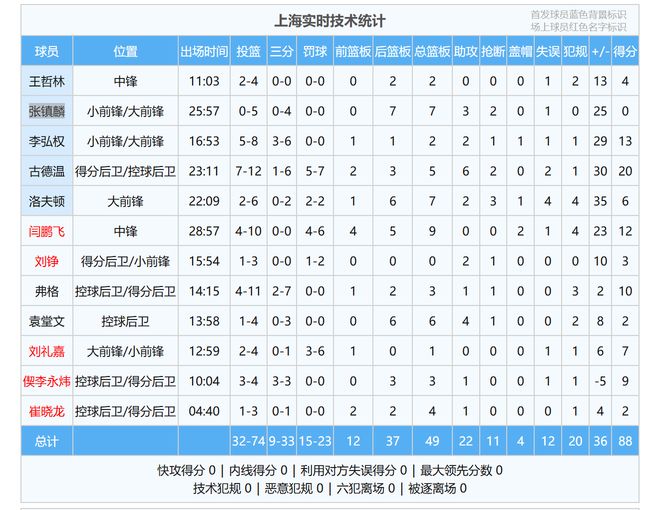 CBA常规赛第七轮,上海队坐镇主场对阵CBA鱼腩四川队, 结果,上海队也是没有出什么力,就以88-52大胜四川队36分。可以说,如果不是上海队留手,赢四川队50分,也是不会有太多的难度。对于本场比赛的情况,可以说,没有什么好分析的,四川队水平不行,球员心态不行,这也是客观事实。