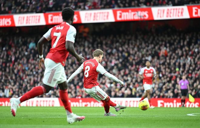 第14分钟,赖斯中场断球,萨卡右路突破,禁区附近低平球传中,厄德高停球稍作调整,随后起脚扫射,皮球从右下角钻入网窝,阿森纳打破僵局,1-0!第31分钟,厄德高斜传策动攻势,萨卡右路内切低射,击中德克伊珀产生折射,费布鲁亨将球没收。