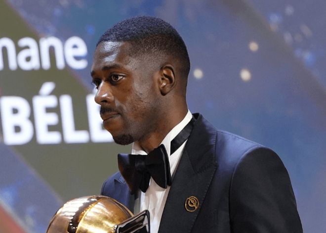 以下是各奖项汇总:年度最佳男足球员:登贝莱(巴黎圣日耳曼)