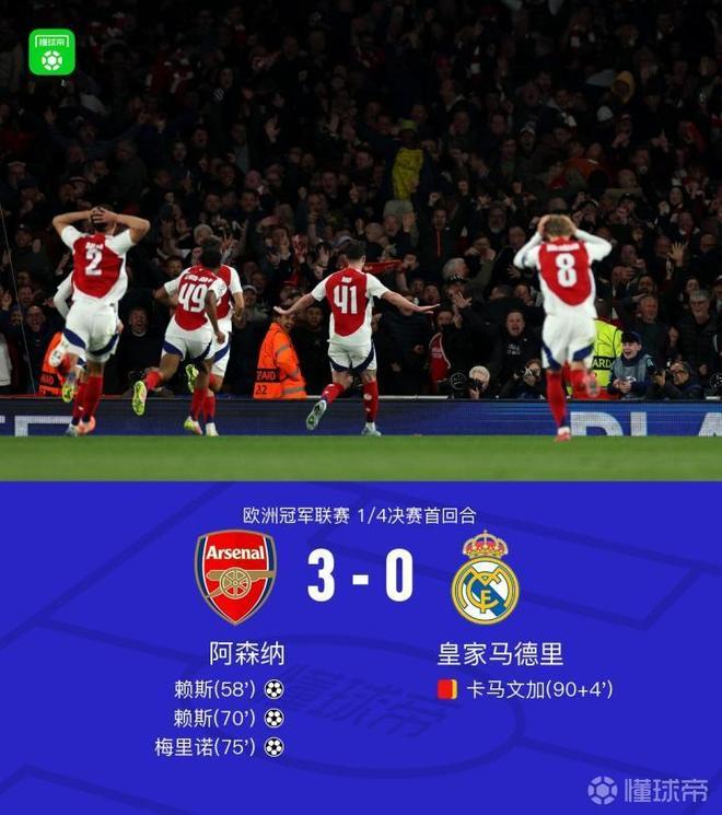 24/25赛季欧冠联赛 1/4决赛首回合 阿森纳3-0皇马