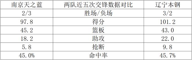 两队近五次交锋数据对比: