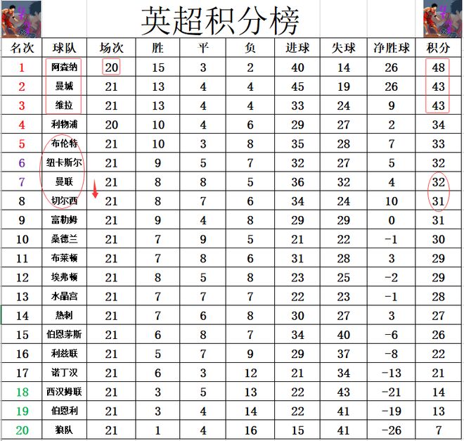 英超最新积分战报阿森纳开心!切尔西输球曼城维拉曼联平局丢分
